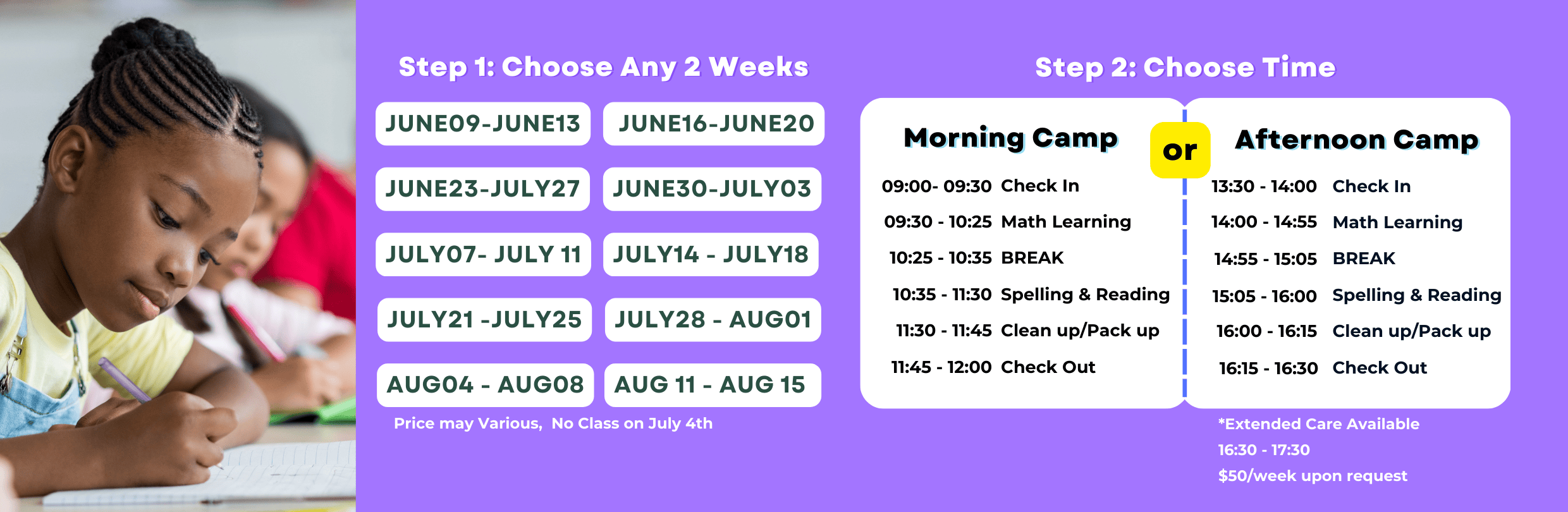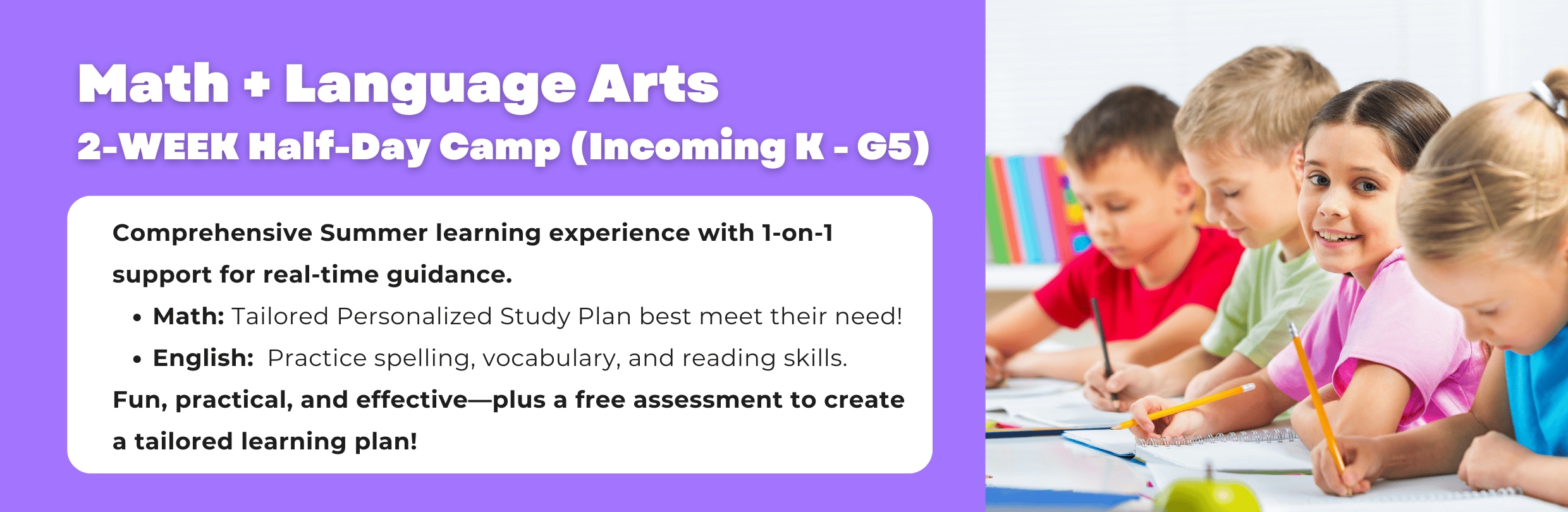 Option 1: Math & English 2-Week Half-Day Camp